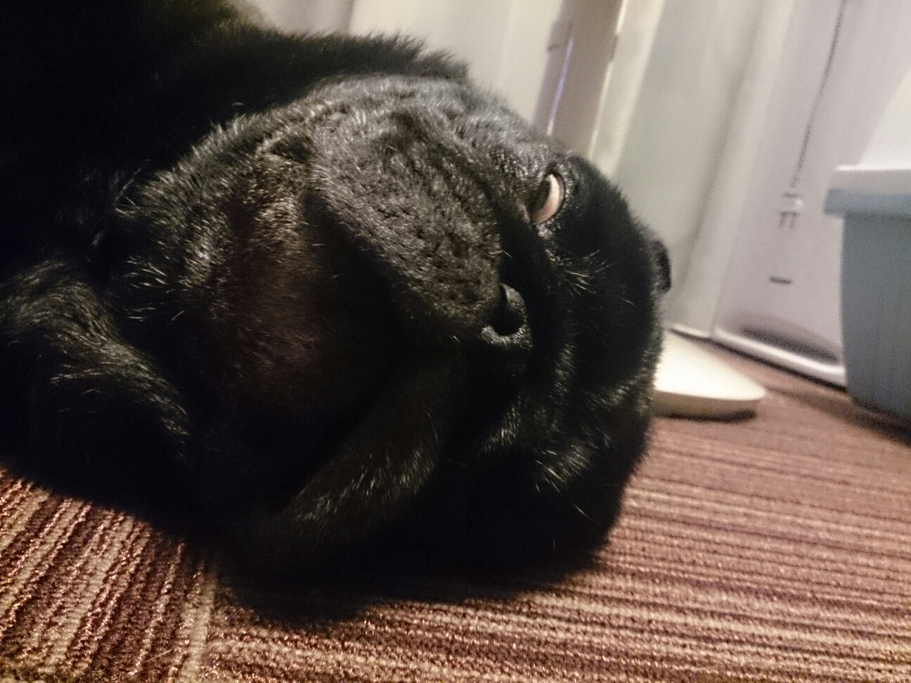 1回目のMRI検査が終わり、 いろいろな菌に対応する、メジャーな抗生物質の服用を始めた。 が、ほどなく軟便・下痢→血便。 そういえば、抗生物質で下痢を起こしたことが 過去何度かある。 かかりつけ医で、薬の変更をしてもらう。 1ヶ月の間に、イソフル → セファクリア → クラリスロマイシン。 ・・・全滅。 内服薬よりはいいかも、ってことで 「高いんだけど・・・」という前置きの注射(コンベニア)を。 ちなみにキロあたり950円、萬の体重だとちょうど9000円くらい。 これを2週間に1度。 やっぱり軟便・下痢は続いた。 それでも薬は続けてくださいというので、計3本射った。 そうこうしているうちに、2ヶ月が経ち、 再MRIの日となった。 結局・・・・・ 下痢便と格闘しながらのませた薬も お高いお注射も 全くと言っていいほど効果なく 萬の内耳の塊(デブリスというらしい)は ちーーーーーーとも 小さくなっておらず 内視鏡による直接除去となった。 取り出したものを培養してみたら、萬を困らせていた菌は 数ある抗生物質のなかでも たった2種類しか効かない菌だったってことが分かった。 内視鏡による処置で、だいたいのモノは取れたので しばらくは この状態を維持するため 定期的な洗浄・検査をする。 そしていずれは、耳道を取って塞ぐ(?)全耳道切除という手術を検討しては? という話をされた。 もちろん、耳道を取って塞いじゃうわけだから、 手術をすれば、今後 菌が入り込む可能性はなくなる。 と同時に、耳は完全に聞こえなくなる。 そして、決してカンタンな手術ではなく、むしろ、 脳に近いこと、器官が小さく複雑なこと、神経が張り巡らされていて、 ヘタしたら顔面神経を傷つけ、麻痺を起こし、自力で食べることができなくなるなども 想定される、と。 そうしたリスクがあり、かつ、塞いでしまった内耳にわずかでも菌が残っていたら それがまた増殖し、再手術を余儀なくされる可能性もある。 手術を回避する選択肢としては、 きちんとした洗浄を 定期的にかかりつけ医のもとで行い、細菌チェックをし、 1年に1回くらいは 大学病院で内視鏡かCTかでしっかりと検査を、というもの。 でもこれは、一生続けることになる。 萬は、警戒心が強く、怖がりの甘えん坊。 だから もちろん耳掃除や爪切りなんて全力で抵抗するのだ。 私以外には。 大学病院でも、大暴れ(先生は嫌がる、としか言ってなかったけど 少なくとも15分くらいかけて、何回も洗浄液や生理食塩水を入れ、洗浄する。 何人もの人間に取り押さえられて、萬にとっては意味のわからないことをされるストレスは相当のものだろうと、飼い主も思う。 それなら、いっそ手術でスッキリしては? という病院側の提案だった。 手術の決断は ハードルが高すぎる。 ちょびっと考えて、 『洗浄を、自分でやる』という方法はとれないか?と聞いてみた。 もちろん自宅でできるなら、定期的な検査だけ病院でやってもらえれば、ということで 洗浄のやり方を教えてもらった。 思ったとおり、自宅ではあまり嫌がらなかった。 でも、ちゃんとできているかは分からない。 10月の再診で 細菌チェックをする予定。 先日、アニコムから更新のお知らせが。 とうとう支払った保険料より還ってきた保険金が上回っていた。 せめて にわこには健康でいてほしい~ PR 注)病気に関する文章だらけです。 年明けに 大学病院へ連絡し 診察の予約が取れたのは 1ヶ月後。 悪い病気の可能性もなくはない、と ヒヤヒヤの1ヶ月だった。 2月頭、初診。 結果、「耳だと思いますよ」。 やはり斜頚以外の症状がないこと、神経反応も正常であること、 などから内耳に何らかのモンダイが発生しているのではないか? これを確定させるには、MRI診断しかない、と。 さらに1ヶ月後の3月初旬、MRI検査。 画像に映った萬の左内耳には 大きな塊が。 右耳を正常な状態とすると、その3倍くらいはあった。 これが三半規管を圧迫し、斜頚の症状を出していたのだ。 診断は、内耳炎。 そして多分 これが原因で左耳は鼓膜が破れており、再生は難しい、と。 さらに 右耳の水平耳道も カテーテルがやっと通るくらいにまで狭窄していることが判明。 つまり、萬の耳は ほとんど聞こえていないんじゃないか?と。 塊は、菌の増殖によるもの(膿とか組織片とかの塊)。 普通、内耳炎というと、外耳炎をこじらせて内耳に達することが多いらしい。 でも、萬の場合、外耳道は比較的キレイで、それらしき形跡がない。 おそらく外耳から、ではなく 口か鼻から入った菌が内耳に達し、増殖してしまったんだろうということでした。 呼吸に難有り(吸い込むように呼吸する)の短頭種には多いそう。 さらに、垂れ耳のパグは悪化させてしまう子がいるみたい。 もうずっと前から 耳を掻くことが増えていた。 毎日毎日 耳の中を覗いてた。 見える汚れは すぐ取り除いてた。 たま~に 赤くなってたりするけど 洗浄してしばらくすると収まる。 匂いもない。 かかりつけ医に診てもらって