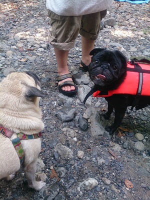 ザ・シンクロナイズド・ポカポカ。 なんと3ヶ月ぶりの更新。 記録がてら 秋からの いろいろを。 入口看板前に にわこ襲来のお印。 紅葉狩り。 萬氏の たふたふ サイコー。 もみじの赤に黒毛が映える。 にわこは 赤にも黄にも映えない。残念。 11月だったか? はなぺちゃフェスティバル。 アゲハ。 父カブキの写真はない。 久しぶりのリッピー &ウニちゃん。 そして この子に逢いたくて行ったと言っても過言ではない にわこの同胎犬 のんたん。 きゃわゆい。 にわこのふてぶてしさのカケラもない。 が 見つめても 見つめても 目を合わせてもらえず しまいには 吠えられた。 報われない 姉妹愛。 フン。 大晦日。 しげるとにわこ。 お正月。 甥っ子と 萬氏。 ちゃちゃこの部屋は 6畳くらい。 広っ。 森林公園へ行く。 ちゃちゃこ みかんは食べず。 おにぎりを食す。 ゴミは持ち帰る主義。 公園内ランにて。 にわこ フェイントを体得。(動画後半) 犬種別年齢換算によると 萬氏は 人間年齢67歳だと知り ショックとともに 初老か。ああなるほどな。と 納得しきりの 今日この頃。 本年もよろしくお願いします。 PR わが家のリビングには 萬とにわかのベッドが 合計5個ある。 にもかかわらず この子ったら ヒト用のクッションを 縦につぶして座り 私のマッサージクッションを肘掛、あごのせとして使う。 いやがらせか? さて サミット前日。 車内では にわかに乗っかられ 萬の迷惑そうな顔が。 いつものことだけど。 文句あるのかしら~? の にわわん。 渋滞に巻き込まれつつ 到着した那須で 大福一家、Kaobuさんと合流し まずは昼食。 この日も とにかく風強し。 にもかかわらず テラス席を陣取った私たちに (というか夫に) 神のご加護が。 みなさん。 強風の時はパラソルが降ってきて 運が良ければ 頭頂部に 見事 柄の部分がヒットしたりして タダでソフトクリームが食べられたりするので ぜひ テラス席に座りましょう。 ソフトクリームで すっかり体が冷え切ったあとは 私のたっての希望で ゴンドラにお付き合いいただいた。 よゆーの 大福親子とにわかちゃん。 に対し ぶるぶる震える よろ爺。 そして きゃーきゃーは言わないが きっと 内心ドキドキだっただろうKaobuさん。 お付き合いありがとう。 紅葉が始まりつつあった 頂上は 冷え切った四十すぎの体には 10分が限界。 早々に 撤収~。 帰りは 何事もなかったかのように 余裕しゃくしゃくの よろ爺。 コテージも みんなで一緒に泊まった。 が 写真が一切ない… 記憶にあることといえば OT福さんに 萬とにわかの扱いの違いについて 言及され 萬に対して過保護であると指摘され にわかに ピンクの服を着せなさいと指導され 挙句 萬と頬よせて寝た!と戯言を言われたことぐらいである。 まったく… 萬は ヒトにはなつかないオトコなのだから そんなことは あろうはずがない。 まあ とにかく 楽しかったよ。 また 会いましょう。 萬は 小さい頃から 車がニガテで ずーっと ぎゃんぎゃん騒ぐし 外で寝るのも 好きじゃなくて 一晩中 起きたり寝たりしている。 いつか 慣れるんじゃないかと期待していたけど 結局 ニガテなまま 7歳。 いつまで 旅行とか行けるのかなぁと ちょっと 考えちゃうわ。 すこし前のことだけど 萬の耳がまたひどいことになっていたので(外耳炎) 病院にいったところ 8.85キロでした。 1歳のころは 11キロとかあったんだよねぇ~ それでも 太りすぎって感じはなかったのだけど。 いまや ごくごく普通のパグ男子サイズです。 前は寒くなってくると、 歩き始めにビッコ引いたりすることもあったけど 股関節への負担もこの体重なら 大丈夫かと。 (萬氏は軽度の股関節形成不全) 一方 にわかちゃん。 8.6キロ…。 むぅ…。 顔も小さいし 手足も細いし、ウエストだってくびれてるのに。 いずれ 萬のほうが軽くなるんじゃないかと ヒヤヒヤものだわ。 毎食前の ヤギミルクのおかげか 萬のストラバイトは その後落ち着き シッコごとに測るph値も 7を超えることはなし(自宅計測)。 その他 健康状態で気になることもなく… 10/12~那須へ。 今年も FUGA SUMMITのお手伝い。 フリマを担当したんだけど “ええええ! これフリマに出しちゃうの!?” ってな 豪華商品が。 (売上は保護団体に寄付されるので 懐には入ってないよ) 改めて 犬飼いは金持ちが多い(わが家との比較)と認識させられた。 ※ 以下、写真はほぼ お多福さん・ぷるのすけさんより。 那須は 風が強く 晴れてたと思ったら こんな雲も。 フガサミットは フレブルメインな集いだけど パグ贔屓の おたふく商店も負けじと出店。 …が 元気ハツラツなフレブルさんたちに比べ なんとなく… やる気が感じられない 看板犬6頭… なんか パグってこうだよね。 しかも 私たち夫婦も、お昼食べたらそっこー帰ったし…。 早退の理由? 「ベルトを忘れ ゴミ袋を腰に巻いてた人がいるからです」(ほんとの理由は違うよ。) そう それは私… トイレに行く時がめんどーだったわ~~~。 フガサミット前日の話はまた今度~。 あまち